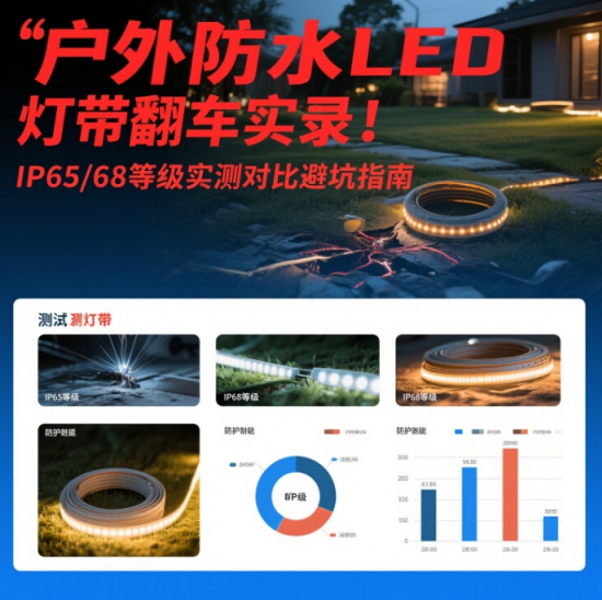 在戶外照明領域,防水知名LED燈帶品牌憑借其獨特的優(yōu)勢,如節(jié)能、壽命長、可彎曲等,成為了眾多用戶的選擇。然而,市面上的戶外防水LED燈帶質量參差不齊,尤其是不同防護等級的產(chǎn)品在實際使用中表現(xiàn)差異巨大。今天,我們就來進行一次IP65和IP68等級戶外防水LED燈帶的實測對比,為大家揭開其中的真相,避免大家在購買時踩坑。