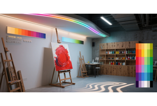 在工作室中,不同的創(chuàng)作區(qū)域需要不同的照明效果。LED燈帶可以幫助藝術(shù)創(chuàng)作者突出重點創(chuàng)作區(qū)域,提高工作效率。在繪畫區(qū)域,可以將白色的LED燈帶安裝在畫架的上方,為繪畫提供充足的光線,同時避免陰影的干擾。在雕塑區(qū)域,可以使用彩色的LED燈帶環(huán)繞在雕塑周圍,根據(jù)雕塑的形態(tài)和特點,調(diào)整燈帶的顏色和亮度,使雕塑在光影的襯托下更加生動、立體。此外,還可以在工作室的展示區(qū)域使用LED燈帶,將作品照亮,吸引參觀者的注意力,提升作品的展示效果。