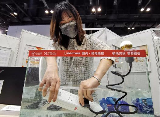 工作人員向現(xiàn)場參觀人員講解道,圓虎·絕電插座可不是普通的插座,它是運(yùn)用阿爾剛雷科技獨(dú)家開創(chuàng)的絕電技術(shù)研制,該技術(shù)通過絕緣集成、漏電判別、同步運(yùn)行、新材料組合等構(gòu)成全新一代連電系統(tǒng),讓電的連接和使用始終處于絕緣保護(hù)狀態(tài)之中,從源頭上解決了“漏電、短路、電火花”三大難題。運(yùn)用該技術(shù)研發(fā)的圓虎·絕電插座,防水等級達(dá)到了國際最高IPX8,防塵等級達(dá)到了國際最高IP6X,且通過了專業(yè)MA無電弧檢測,安全性能全球領(lǐng)先。