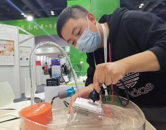 展會現(xiàn)場,阿爾剛雷科技的淋水演示器旁聚集了大批參觀人員,一個(gè)通電中的圓虎·絕電插座在水淋的狀態(tài)下正在正常工作,工作人員徒手觸摸插孔甚至直接在水里帶電插拔也沒有任何觸電情況發(fā)生。這般神奇的現(xiàn)象讓現(xiàn)場的參觀人員感到不可思議,同時(shí)很多參觀人員也表示,如果能將此插座運(yùn)用在殘障人士的日常生活中,將會給殘障人士群體帶來更多的用電安全保障和便利。