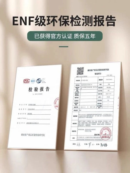 ·環(huán)保認證:ENF級安全守護板材環(huán)保標準達國家最高等級ENF 級(甲醛釋放量≤0.025mg/m3),經權威機構檢測認證,遠超國標E0級標準,即使在密閉空間也能保障室內空氣質量,讓家居生活更安心。