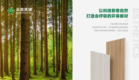 眾美其屋板材用嚴(yán)苛標(biāo)準(zhǔn)鑄就環(huán)保“芯”材,以創(chuàng)新工藝滿足審美追求,讓家不僅成為溫馨的港灣,更是孩子無憂成長(zhǎng)的樂園。