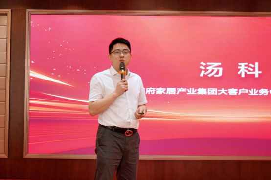 旺德府家居集團(tuán)大客戶業(yè)務(wù)中心總經(jīng)理湯科先生,圍繞政策與產(chǎn)品賦能體系進(jìn)行詳細(xì)解讀。在闡述品牌及核心產(chǎn)品競(jìng)爭優(yōu)勢(shì)的同時(shí),重點(diǎn)強(qiáng)調(diào)板材+輔材的產(chǎn)品推廣布局,明確以此助力品牌與合作伙伴共同開拓高端家居市場(chǎng)。