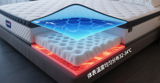 從生理學的角度來看,夜間翻身主要是為了尋找更舒適的溫度和壓力分布。當床墊無法有效調(diào)節(jié)溫度時,我們的身體會通過翻身來尋找更涼爽或溫暖的區(qū)域。而溫控材料的應用打破了這一循環(huán),它能夠主動調(diào)節(jié)溫度,讓我們在一個位置上就能保持舒適,從而減少了不必要的翻身動作。