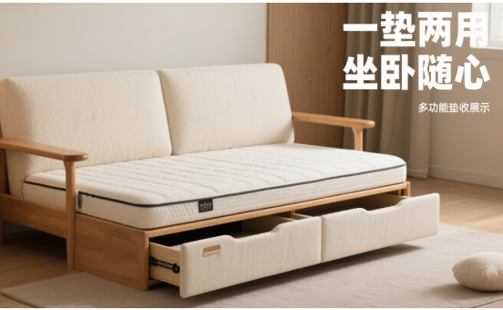 除了尺寸,空間的多功能利用也是小戶型的需求重點。例如,一些具有收納功能的床墊就很適合小戶型。這類床墊可以通過抬起床面,在床體下方形成一個較大的收納空間,用于存放換季衣物、棉被等物品,有效節(jié)省了臥室的空間。