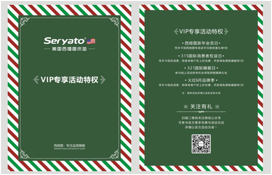 “愛您一輩子”,是西婭圖當(dāng)下要做的事,亦是未來堅(jiān)持做的事。未來已來,感恩常在!佛山市西婭圖家具實(shí)業(yè)有限公司為更進(jìn)一步地表達(dá)對(duì)客戶的深切關(guān)愛,故特別贈(zèng)予忠實(shí)客戶“VIP專享活動(dòng)特權(quán)卡”,讓親愛的消費(fèi)者在2020年也能繼續(xù)感受到來自西婭圖品牌的滿滿愛意: