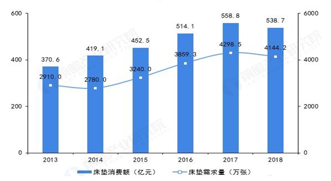 據(jù)官方數(shù)據(jù)統(tǒng)計(jì),2018年中國(guó)的床墊消費(fèi)額已經(jīng)達(dá)到538.7億元,并且在2014-2018年間以17.7%的年均增長(zhǎng)率發(fā)展。預(yù)計(jì)在2022年床墊消費(fèi)將超過(guò)1000億級(jí)的消費(fèi)量。大家想想,現(xiàn)在最牛的床墊品牌在中國(guó)市場(chǎng)占有率也只有3%左右,其他品牌連1%都達(dá)不到,這給予我們很大的發(fā)展機(jī)會(huì)與發(fā)展空間。只要我們認(rèn)真做、創(chuàng)新拼,一定將有所作為。