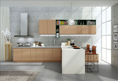 空間布局采用F型布局,突破傳統(tǒng)彰顯其獨(dú)特、個(gè)性感;櫥柜主體中間設(shè)置玻璃隔層,并與吧臺(tái)完美銜接,讓空間變得通透,有層次。采用木紋與釉晶板混搭搭配,材質(zhì)的混搭讓產(chǎn)品的層次進(jìn)伸度更豐富。與此同時(shí),切入隱形扣手式設(shè)計(jì)增加產(chǎn)品線條、空間感。