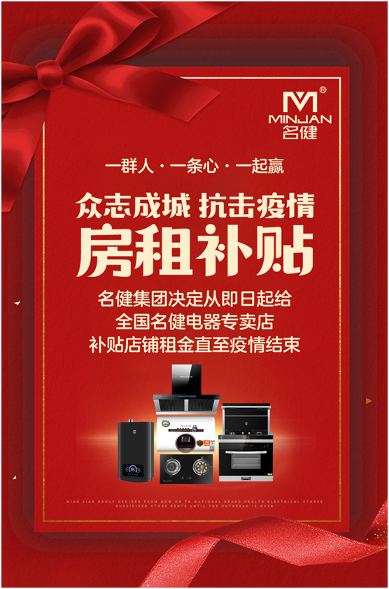 春節(jié)過后,原是廚電行業(yè)的小黃金期。然而,在“新冠肺炎”疫情影響下,名健電器全國經銷商門店響應國家號召閉門休業(yè),門店租金壓力不言而喻。面對當前疫情防控的嚴峻形勢,名健電器第一時間采取應對措施,對其全國經銷商門店實施門店租金補貼政策,有效緩解經銷商的經營壓力。