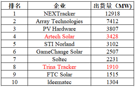 跟蹤支架的競爭格局目前非常集中化,2020年全球跟蹤支架出貨量前十的廠家中,中國企業(yè)僅占兩家,如下圖所示。
