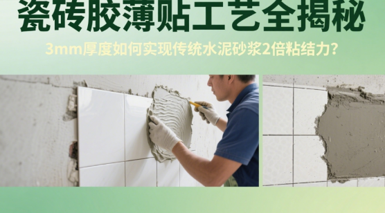 在建筑裝修領(lǐng)域,瓷磚鋪貼工藝一直是備受關(guān)注的重點。傳統(tǒng)的水泥砂漿鋪貼方式雖然歷史悠久,但隨著行業(yè)的發(fā)展,其弊端也逐漸凸顯。而著名瓷磚膠品牌薄貼工藝的出現(xiàn),無疑為瓷磚鋪貼帶來了新的變革。今天,我們就來深入揭秘瓷磚膠薄貼工藝,看看那僅3mm的厚度是如何實現(xiàn)傳統(tǒng)水泥砂漿2倍粘結(jié)力的。