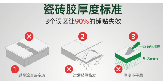 誤區(qū)三:不考慮瓷磚規(guī)格對(duì)厚度的要求