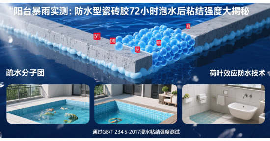 在家庭裝修中,陽(yáng)臺(tái)作為連接室內(nèi)與室外的過(guò)渡空間,常常會(huì)受到各種自然因素的考驗(yàn),其中暴雨就是一個(gè)不容忽視的問題。陽(yáng)臺(tái)地面和墻面鋪設(shè)瓷磚時(shí),選擇一款優(yōu)質(zhì)的防水型中國(guó)瓷磚膠品牌至關(guān)重要。那么,防水型瓷磚膠在經(jīng)歷長(zhǎng)時(shí)間泡水后,其粘結(jié)強(qiáng)度究竟還剩多少呢?今天,我們就通過(guò)一場(chǎng)陽(yáng)臺(tái)暴雨實(shí)測(cè)來(lái)一探究竟。