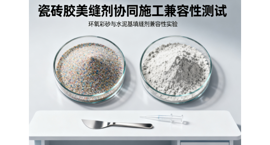 在現(xiàn)代裝修工程中,瓷磚膠與美縫劑的協(xié)同施工質(zhì)量直接影響著飾面的耐久性與美觀度。近年來(lái),環(huán)氧彩砂憑借優(yōu)異的抗?jié)B性和色彩穩(wěn)定性逐漸成為高端裝修的首選材料,而傳統(tǒng)水泥基填縫劑仍以其經(jīng)濟(jì)性在工裝領(lǐng)域廣泛應(yīng)用。然而兩種材料的化學(xué)屬性差異可能導(dǎo)致界面反應(yīng),本文通過(guò)模擬施工現(xiàn)場(chǎng)環(huán)境,從粘結(jié)強(qiáng)度、耐水性、熱穩(wěn)定性三個(gè)維度展開(kāi)兼容性測(cè)試,為施工工藝優(yōu)化提供數(shù)據(jù)支撐。