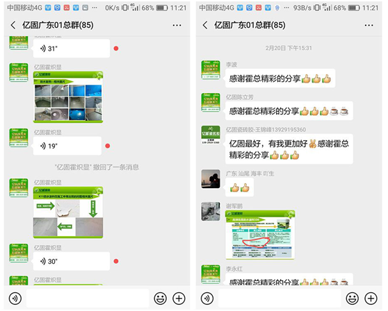 “防疫宅家不掉崗,線上學(xué)習(xí)提升快”,億固總部結(jié)合終端實(shí)際情況制定詳細(xì)培訓(xùn)計(jì)劃,通過(guò)微信群進(jìn)行授課培訓(xùn)。其內(nèi)容涵蓋產(chǎn)品賣點(diǎn)塑造、門店?duì)I銷、渠道維護(hù)、產(chǎn)品培訓(xùn)等,課程實(shí)用高效,獲得一致好評(píng)。