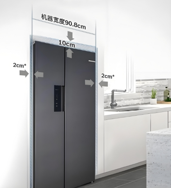 冰箱寬度: 測(cè)量冰箱放置位置的寬度,確保冰箱兩側(cè)留有至少10cm的散熱空間。
