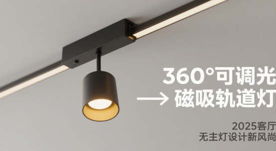 在2025年的家居裝修領(lǐng)域,現(xiàn)代極簡風(fēng)格持續(xù)風(fēng)靡,其中客廳無主燈設(shè)計(jì)更是成為眾多家庭的首選。而360°可調(diào)光磁吸軌道燈,無疑是這一設(shè)計(jì)方案中的核心亮點(diǎn),它為客廳帶來了前所未有的照明體驗(yàn)和美學(xué)效果。