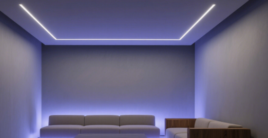 間接照明是指通過反射或折射的方式將光線投射到空間中,避免直接光線的刺眼感。在小戶型中,間接照明可以使光線更加柔和均勻,同時還能營造出寬敞明亮的視覺效果。例如,在天花板四周安裝暗藏?zé)魩?,光線向上反射,使天花板看起來更高;在電視柜下方安裝隱藏式射燈,照亮地面,讓空間顯得更加開闊。