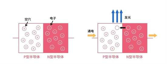 LED(Light Emitting Diode),全名叫發(fā)光二極管,是一種能夠?qū)㈦娔苻D(zhuǎn)化為可見(jiàn)光的固態(tài)半導(dǎo)體器件。LED發(fā)光部件由兩部分組成,一部分叫P型半導(dǎo)體,里面以空穴為主;另一部分叫N型半導(dǎo)體,里面以電子為主。兩部分連接在一起的結(jié)構(gòu)叫做P-N結(jié)。通電以后,N型半導(dǎo)體里的電子就會(huì)移動(dòng)到P型半導(dǎo)體里填充空穴,產(chǎn)生的能量以光的形式釋放出來(lái)。發(fā)光的顏色取決于制作半導(dǎo)體的材料。