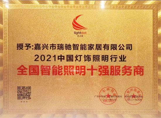 亮點獎2021中國燈飾照明行業(yè)全國智能照明十強服務商