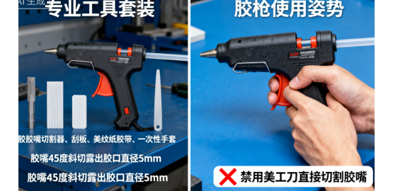打膠過(guò)程中,膠槍的移動(dòng)速度、角度和力度配合是決定膠縫平整度的關(guān)鍵。不少新手因手部抖動(dòng)或移動(dòng)不均,打出的膠縫呈現(xiàn)“波浪形”或“斷點(diǎn)”,其實(shí)只需掌握“穩(wěn)、勻、直”三字訣即可改善。