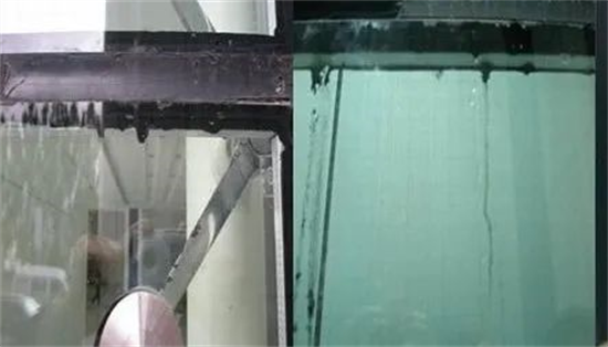 白油如果滲入到丁基密封膠中,還能夠溶解丁基密封膠,出現(xiàn)流油現(xiàn)象。某工程中空玻璃丁基密封膠出現(xiàn)流淌,見下圖。