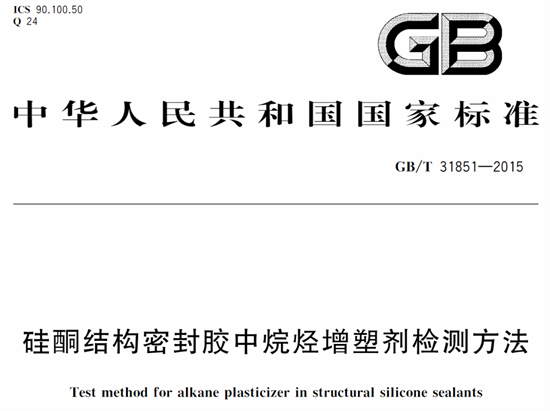 GB/T 31851-2015《硅酮結(jié)構(gòu)密封膠中烷烴增塑劑檢測方法》給出了熱重分析、熱失重和紅外光譜分析方法。