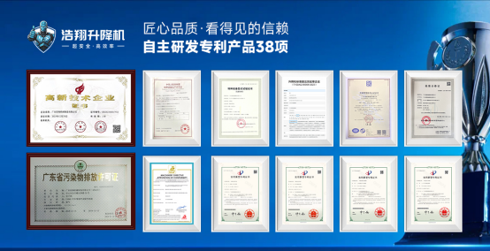 浩翔升降機(jī)始終堅守品質(zhì)底線,已成功獲得特種設(shè)備生產(chǎn)許可證《TS2444360-2027》、質(zhì)量管理體系認(rèn)證《GB/T 19001-2016/ISO 9001:2015》及高新技術(shù)企業(yè)認(rèn)證《GR202344017911》,以權(quán)威資質(zhì)背書產(chǎn)品合規(guī)性、可靠性與創(chuàng)新力。