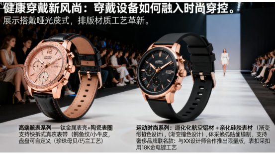 在智能科技與日常美學深度融合的當下,可穿戴設(shè)備正經(jīng)歷從功能工具到時尚單品的蛻變。當運動手環(huán)的塑膠質(zhì)感逐漸被金屬編織表帶取代,當智能手表的電子屏開始復刻機械腕表的陀飛輪紋路,這場"穿戴革命"不僅重構(gòu)著人體與科技的交互方式,更在重新定義時尚產(chǎn)業(yè)的設(shè)計邏輯。如何讓可穿戴設(shè)備擺脫"電子配件"的刻板印象,真正成為穿搭系統(tǒng)中的有機組成?這需要從材質(zhì)創(chuàng)新、設(shè)計語言、場景適配三個維度展開深度探索。