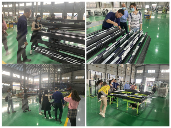 隨后,客人們走進(jìn)生產(chǎn)車間。寬敞的車間、先進(jìn)的生產(chǎn)設(shè)備、規(guī)范的管理讓各位來賓們嘆為觀止。參觀過程中,副總經(jīng)理陳沛華及張小奇總監(jiān)向業(yè)主代表團(tuán)介紹了車間現(xiàn)場各區(qū)域的分布、新產(chǎn)品的制作運(yùn)行情況、精益生產(chǎn)的推進(jìn)成果、自動化生產(chǎn)線的引進(jìn)等內(nèi)容??腿藗儏⒂^了產(chǎn)品的生產(chǎn)原料以及鴨嘴膠條、EPDM膠條、銷釘注膠等先進(jìn)工藝的制作過程,代表團(tuán)對維佰帝領(lǐng)先行業(yè)的生產(chǎn)技術(shù)及高端系統(tǒng)門窗產(chǎn)品給予了高度評價(jià)。