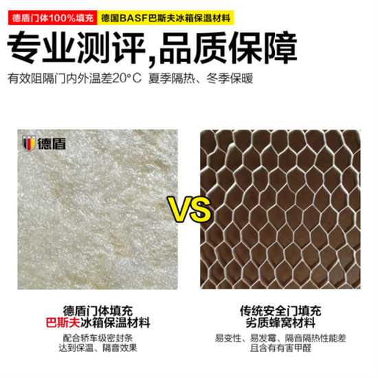 門體表面安裝雙層德國蒂森克虜伯鍍鋅鋼板,在不易生銹、保證使用壽命的同時(shí),也使門體具有更強(qiáng)的防暴性能,不易變形。在防撬結(jié)構(gòu)上,德盾自研了德國專利防撬鋼技術(shù),形成裝甲防撬鋼結(jié)構(gòu),有效防止暴力破拆,具備金庫級別的防盜性能。