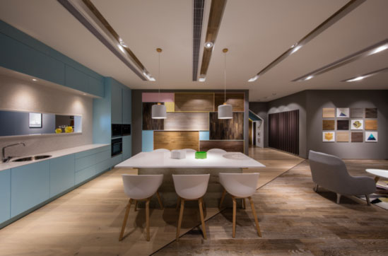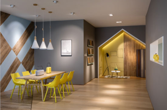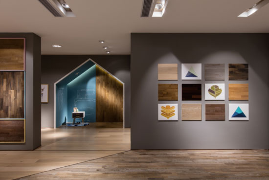 在品牌視覺形象的基礎(chǔ)上,設(shè)計師進(jìn)一步將品牌理念實體化,打造集生活方式呈現(xiàn)、產(chǎn)品展示及商務(wù)洽談的復(fù)合功能空間。與通常的建材銷售空間不同的是,設(shè)計師沒有將產(chǎn)品陳列放在第一視覺點。