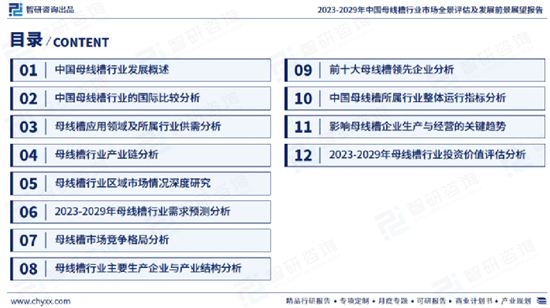 由智研咨詢專家團隊精心編制的《2023-2029年中國母線槽行業(yè)市場全景評估及發(fā)展前景展望報告》(以下簡稱《報告》)重磅發(fā)布,《報告》旨在從國家經(jīng)濟及產(chǎn)業(yè)發(fā)展的戰(zhàn)略入手,分析母線槽行業(yè)未來的市場走向,挖掘母線槽行業(yè)的發(fā)展?jié)摿ΓA(yù)測母線槽行業(yè)的發(fā)展前景,助力母線槽業(yè)的高質(zhì)量發(fā)展。
