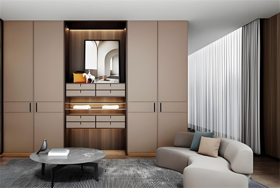 全屋家居通過(guò)巧妙的空間設(shè)計(jì),最大化地利用每一寸空間。例如,衣柜的“頂天立地”設(shè)計(jì),不僅美觀、視覺(jué)統(tǒng)一,還增加了收納空間,無(wú)縫對(duì)接無(wú)需清理積塵。這樣的設(shè)計(jì)不僅提升了空間的整體感,更讓家的每一個(gè)角落都散發(fā)出井然有序的美感。