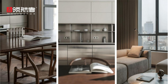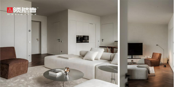領(lǐng)航者定制柜是北歐色彩哲學(xué)的最佳載體,米白色的客廳定制柜用啞光質(zhì)感避免強(qiáng)光刺眼,與墻面銜接自然,悄悄拉寬空間視覺(jué);餐廚區(qū)的深棕色定制柜保留木紋底色,剛好呼應(yīng)深色木地板,旁邊再搭配淺灰色開放格架,深淺對(duì)比間帶出細(xì)膩層次。就連角落的定制矮柜,也以“上淺下深”配色貼合整體風(fēng)格,不破壞空間通透感,色彩和諧感全藏在這些定制柜的搭配里。