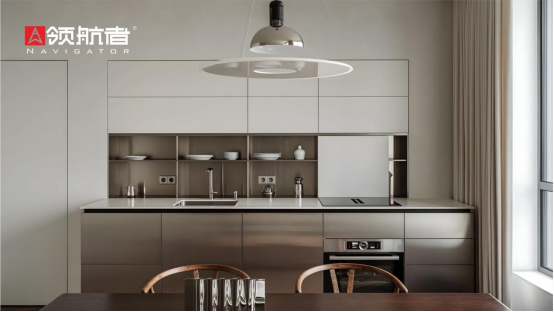 北歐風(fēng)的“極簡(jiǎn)”藏在領(lǐng)航者廚房定制柜的功能里,廚房一體化柜體外側(cè)平整,內(nèi)里卻藏“收納魔法”——封閉柜可存放換季或不常用的廚房雜物,讓空間遠(yuǎn)離雜亂;開放格用來(lái)放置常用餐具,拿取格外順手;高柜的設(shè)計(jì)則方便取用深處物品,每一處空間都能被高效利用,真正做到功能“藏而不露”,令廚房既有著簡(jiǎn)約大氣的視覺(jué)效果,又能充分滿足實(shí)用的收納與操作需求。