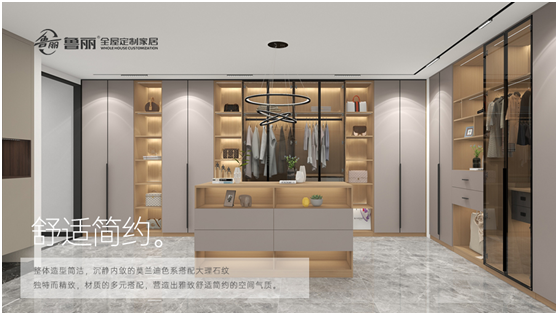 素凈淡雅的原木材質(zhì)、富有肌理感的大理石、線條利落的金屬材質(zhì),選用這些簡(jiǎn)單而富有質(zhì)感的材質(zhì)運(yùn)用于全屋定制中,不僅可以提升空間的氣質(zhì),給人帶來(lái)眼前一亮的視覺(jué)效果,更能提升居住體驗(yàn)感。以魯麗木業(yè)的板材定制而成的衣柜為例,其以原木色為基調(diào),保持了木的自然與本真,不嗜繁雜,讓人在歸家時(shí)回歸心靈的寧?kù)o。