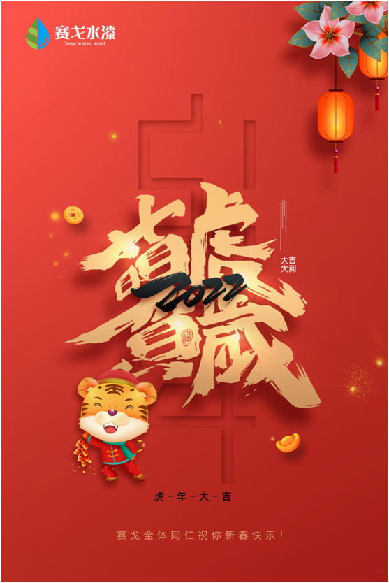 時(shí)序更替,華章日新。值此新春佳節(jié)即將到來(lái)之際,賽戈水漆攜全體員工向賽戈的新老客戶和關(guān)心支持賽戈發(fā)展的社會(huì)各界人士,致以新春的問(wèn)候和美好的祝愿!