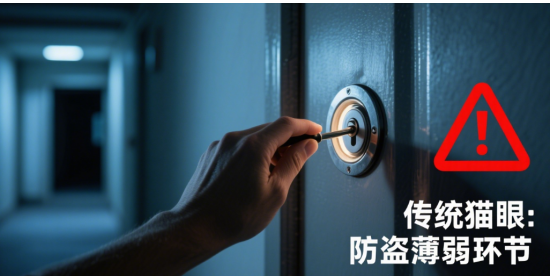 貓眼,學名門鏡,是裝在住宅戶門上的一種小型光學儀器,便于居民觀察戶外情況。但正是這個看似實用的小物件,卻成為了不法分子眼中的“突破口”。