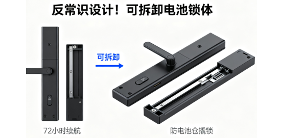在智能家居安防領(lǐng)域,傳統(tǒng)智能鎖的續(xù)航焦慮與防盜性能不足始終是用戶痛點。近日,一款搭載"可拆卸電池鎖體"技術(shù)的新型智能鎖產(chǎn)品引發(fā)行業(yè)關(guān)注——通過將電池倉與鎖體結(jié)構(gòu)創(chuàng)新分離,配合微功耗芯片組與防撬機(jī)械設(shè)計,實現(xiàn)了72小時緊急續(xù)航與電池倉物理防撬的雙重突破。這種打破常規(guī)的技術(shù)路徑,正在重新定義智能鎖的安全續(xù)航標(biāo)準(zhǔn)。
