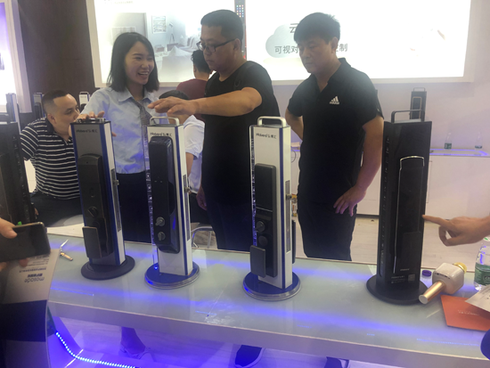 據(jù)悉,弘博匯所展出的H1、F5兩款新品皆為主打超薄機(jī)身的智能鎖臻品:Hobere-H1采用中置驅(qū)動離合結(jié)構(gòu)設(shè)計(jì)、標(biāo)配藍(lán)牙模塊,且機(jī)身厚度成功突破行業(yè)10mm瓶頸,整體更為時(shí)尚智能,實(shí)乃業(yè)界“福音”;Hobere- F5則擁有“超薄機(jī)體+高性價(jià)比”兩大優(yōu)勢,相信必是追求高品質(zhì)智能生活的消費(fèi)者之理想選擇。亮點(diǎn)滿滿的H1、F5新品一經(jīng)亮相,便迅速俘獲觀展嘉賓的心,他們紛紛露出“求知若渴”的模樣,主動與弘博匯工作人員了解產(chǎn)品的更多信息。