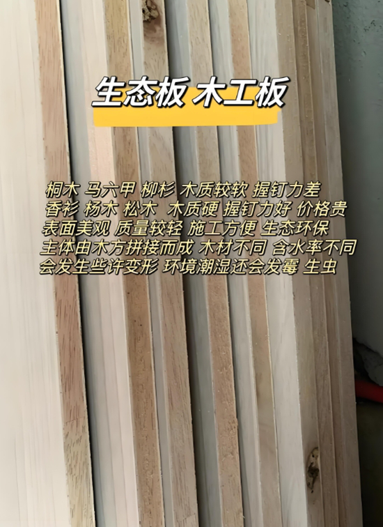 甲醛含量:生態(tài)板的甲醛含量是衡量其環(huán)保性能的重要指標。常見的甲醛釋放標準有E0和E1級別,數(shù)值越低越好。選擇時應(yīng)查看產(chǎn)品檢測報告,確保符合國家標準。