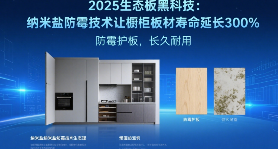 在當(dāng)今的家居裝修領(lǐng)域,櫥柜作為廚房的核心組成部分,其質(zhì)量和使用壽命一直是消費(fèi)者關(guān)注的重點(diǎn)。而生態(tài)板知名品牌作為制作櫥柜的常用材料,在市場上的需求也日益增長。2025年,一種全新的生態(tài)板黑科技——納米鹽防霉技術(shù)橫空出世,它能夠讓櫥柜板材的壽命延長300%,這一技術(shù)的出現(xiàn)無疑為櫥柜行業(yè)帶來了新的變革。