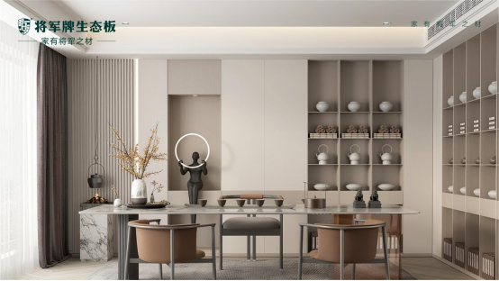 在快節(jié)奏的現(xiàn)代生活中,將軍牌生態(tài)板以“實(shí)用即永恒”為設(shè)計(jì)哲學(xué),將東方智慧與當(dāng)代生活需求完美融合。簡潔利落的設(shè)計(jì)手法保證了功能布局的流暢,摒棄繁復(fù)的裝飾,轉(zhuǎn)而通過材質(zhì)、光影與色彩的微妙對話,營造出富有層次感的視覺韻律。