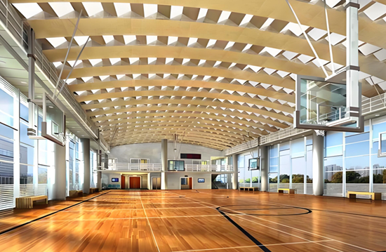體育館不僅是運(yùn)動(dòng)場(chǎng)所,還是集會(huì)和演出的場(chǎng)地。因此,需在天花板和墻壁安裝吸音材料,減少回聲,確保聲音清晰傳播。