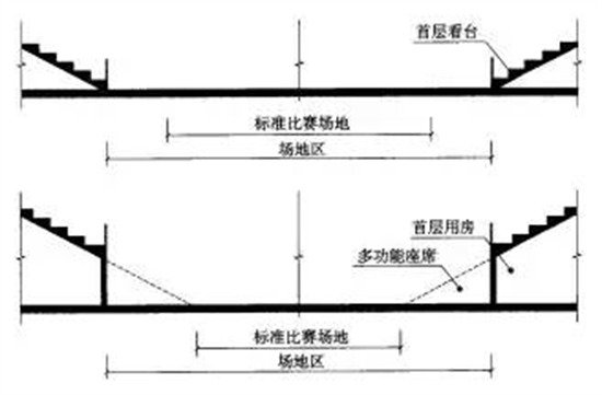 體育建筑的輔助用房區(qū)是指出比賽廳一起的用房,包括觀眾用房、運動員用房、貴賓用房、競賽管理用房、新聞媒體用房、場館運營用房及 技術設備用房等。