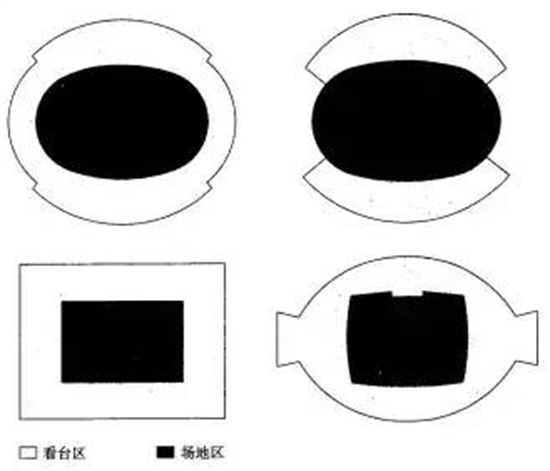 體育類建筑的基本組成一般包括三大功能區(qū):場地區(qū)、看臺區(qū)、輔助用房區(qū)。