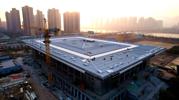 目前,洞國體育館外墻和頂部的裝飾已經(jīng)基本完成,2024年元旦前后就將進入到室內(nèi)裝修階段。