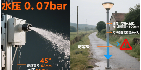 例如,IPX3表示路燈能夠承受傾斜角度小于60度的淋水;IPX5則表示路燈可以承受來自任何方向的低壓噴水而不受影響;IPX6意味著路燈能承受強烈的海浪沖擊或強烈噴水;IPX7表示路燈可在一定時間或水壓的條件下,在水中浸泡而不造成有害影響;IPX8則代表路燈可在制造商規(guī)定的條件下長時間浸在水中而能正常使用。