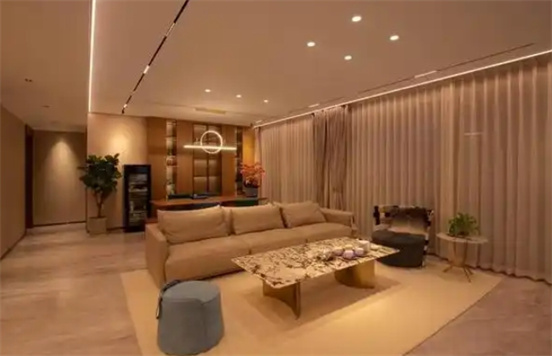 無主燈設(shè)計(jì)強(qiáng)調(diào)光影與空間的互動(dòng)。通過精心設(shè)計(jì)的光線投射,可以在墻面、地面和天花板上創(chuàng)造出各種形狀和圖案,增加空間的趣味性和動(dòng)態(tài)感。這種設(shè)計(jì)手法不僅能夠突出空間的重點(diǎn)區(qū)域,還能夠引導(dǎo)人們的視線和行動(dòng)路徑,增強(qiáng)空間的導(dǎo)向性。光影的這種互動(dòng)性,使得空間變得更加生動(dòng)和有趣。